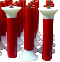 Konik kısım malzemesi polyamid, düz olan kısım malzemesi çelik borudan imal edilmektedir. Konveyör bant kaymalarını engellemek için kullanılmaktadırlar.